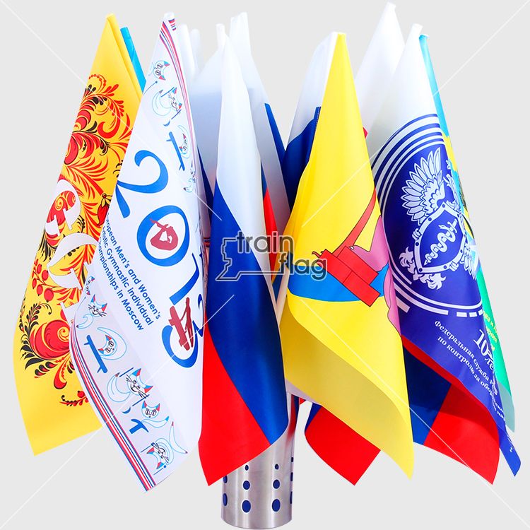 Мы изготавливаем спортивные флажки на заказ в любом количестве. Кол-во цветов на спортивном флажке не влияет на его цену. С нашими флажками аплодисменты зазвучат громче!